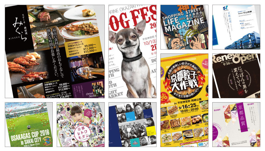 あらゆるジャンルをデザインしてきた経験があります。ご予算に合わせて制作させていただきます。チラシとWebデザインを一括で依頼できるので、ブランディングイメージも統一できます。LINEなどオンライン対応で完結出来るレスポンスの良さも当社の特徴です。折込やポスティングまでお任せ下さい。